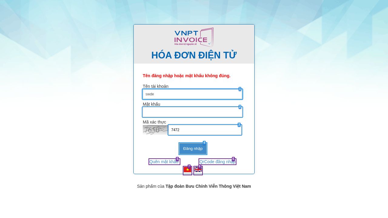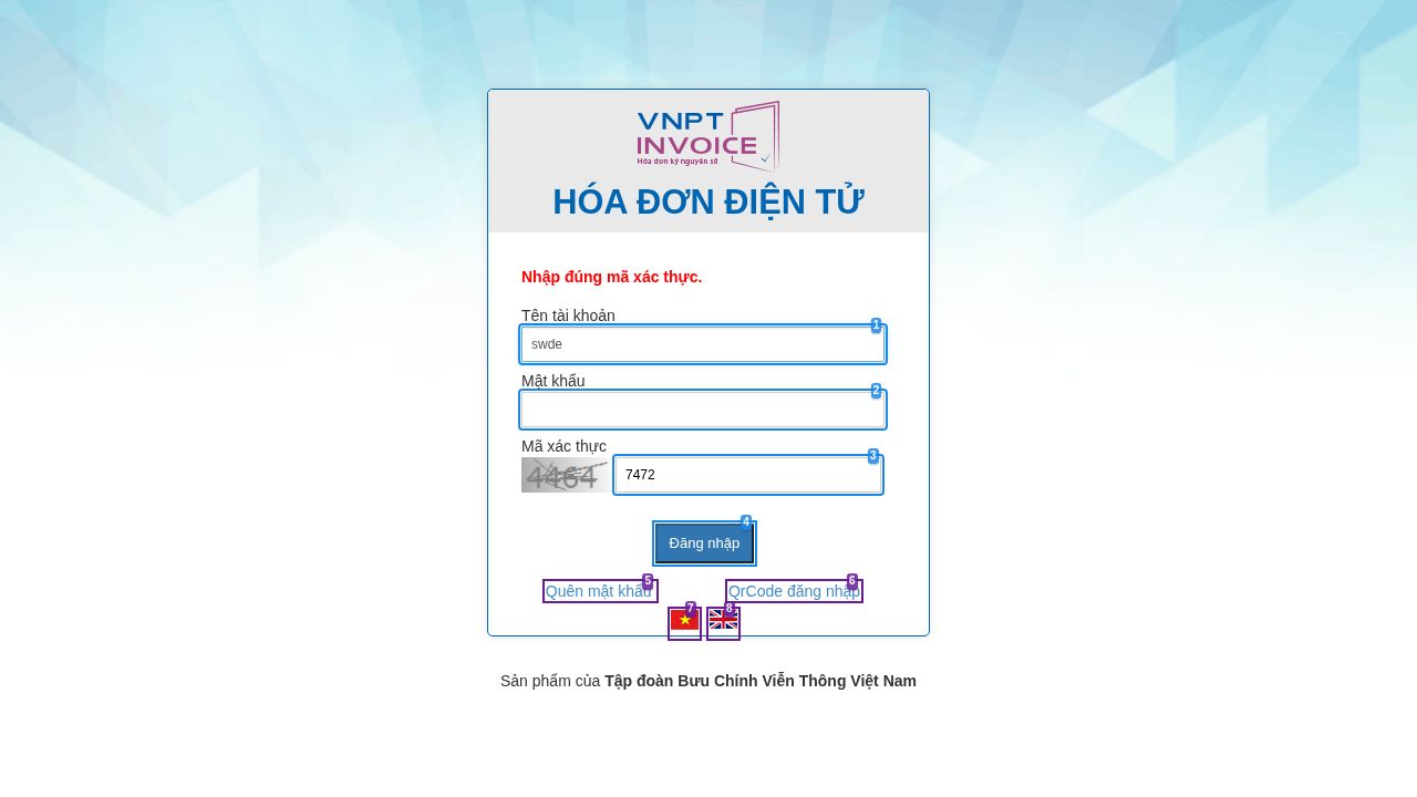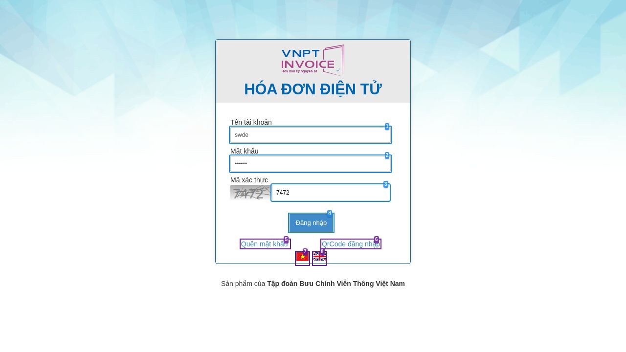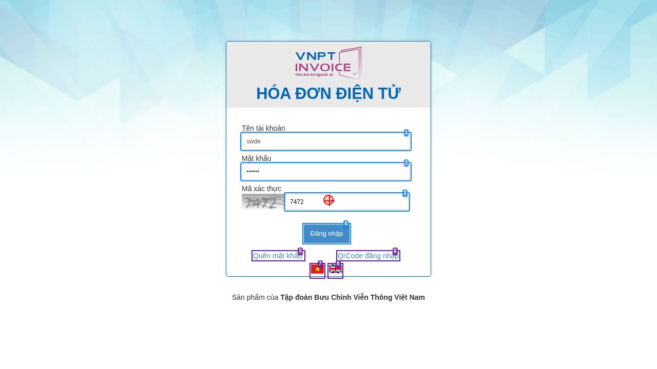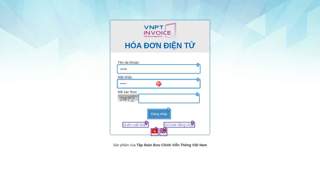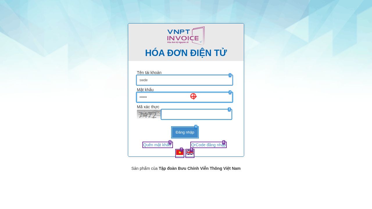 ✅ PASSED: The input operations for username and password have been successfully completed, with the input fields displaying the entered content (username shows 'swde', password shows masked characters).